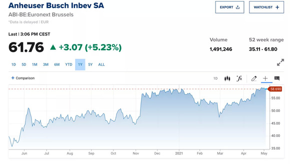 根据百威集团发布的最新通报称,现任北美区总裁Michel Doukeris(中文名:邓明潇)将从7月1日起接任全球首席执行官一职。而现任首席执行官薄睿拓(Carlos Brito)将在百威工作32年、出任首席执行官15年后离任。换帅加上发布销售好于预期的一季报后,百威集团的股价显著上涨。