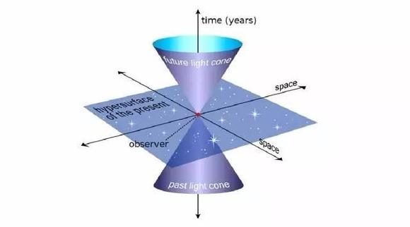 换句话说,现在发生的事件,只会对其「将来光锥」内的事件产生影响;也只有「过去光锥」内的事件才能影响到现在,而「过去光锥」之外的事件由于受到光速的限制无法对现在产生影响。