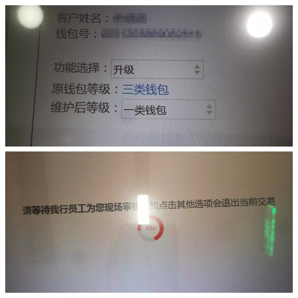 在前几家银行都顺利升级的基础,记者原本以为对农业银行钱包的升级应该也不会有大问题,不想却碰了壁。经过漫长的等待和操作后,中国农业银行共和支行柜台工作人员表示,农行目前的系统需要读取绑定的银行卡信息,而记者的农行二类数字人民币钱包绑定的是工行的储蓄卡,因而无法升级。经过向农行上海市分行咨询后,共和支行工作人员致电记者表示,农行第一期的系统不支持绑定他行卡做升级,只支持农行钱包绑定农行卡做升级。