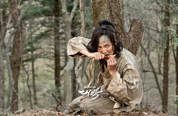 据说,张根硕在拍摄撕咬蛇肉的镜头时用的是活生生的毒蛇,虽然已把毒牙拔除,但仍然让人心惊胆战。敬业啊!