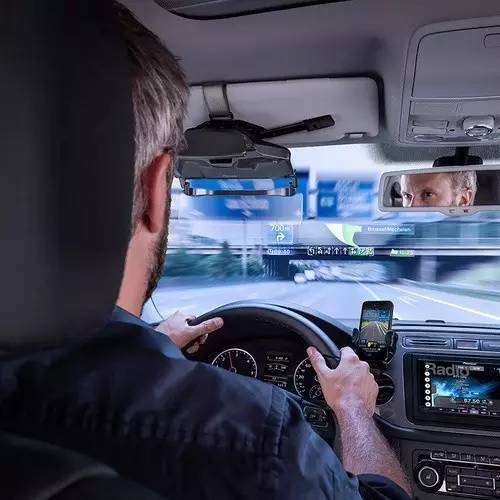 很多汽车在其车载系统当中加入了AR应用,比如,GMC在其挡风玻璃上投射虚拟图像,用意是让驾驶者不需要低头查看仪表的显示与资料,始终保持抬头的姿态,降低低头与抬头期间忽略外界环境的快速变化以及眼睛焦距需要不断调整产生的延迟与不适;或者帮助驾驶者更好地感知路况信息,提高驾驶安全性。