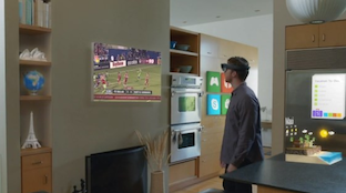 Google Glass允许你与周围环境交互时,将通过眼镜上的「微型投影仪」把虚拟图像直接投射到你的视网膜,于是乎你看到的就是叠加过虚拟图像的现实世界。可能有盆友会疑惑了,那它跟Hololens和Magic Leap区别在哪?别急,继续往下看。