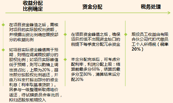 在员工持股的形式上,根据长期利益捆绑和短期激励的不同目的,分为持有公司股份和持有项目股份两个方面,即持股计划和项目跟投。