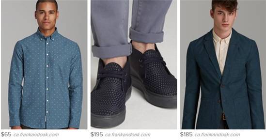 https://ca.frankandoak.com/shop如果你只是想找男士的服装,那么这家网站一定不会让你失望。这是来自蒙特利尔的服装品牌,每年都会有12种新款服饰推出,原汁原味的法兰西风情。价格:起价为45元,极具性价比。邮费:加拿大国内大约为6元