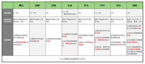 (本图来自离职者的介绍,各公司竞业违约政策因人而异,以具体的双方签约为准。)