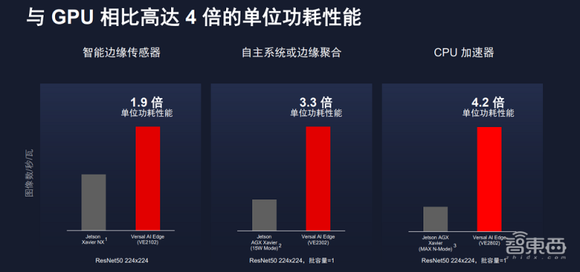 Rehan Tahir称,Versal AI Edge采用了AI引擎阵列,与英伟达的Jetson AGX Xavier GPU相比,具有4倍AI单位功耗性能的优势。这主要是因为赛灵思采用了专为机器学习优化的AI引擎。