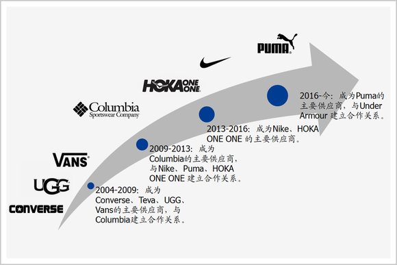 ▲华利集团主要客户发展历程;图片来源:华利集团招股书