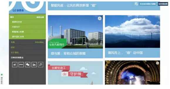 为了给中国受众搭建快速了解和分享GE故事的内容平台,帮助客户深入感受科技的魅力。2015年,“GE创想志”上线,通过充满趣味的文字、影像等多媒体形式,借助充满说服力又简单易懂的内容,为用户介绍前沿科技、创新背后的故事以及GE在中国的最新实践。内容则是由当下潮流和读者兴趣所决定。