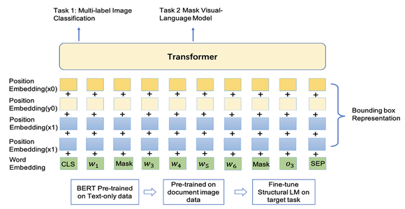 StructuralLM在语言模型StructBERT的基础上扩展到结构化语言模型,充分利用图片文档数据的2D位置信息,并引入box位置预测的预训练任务,帮助模型感知图片不同位置间词语的关系,这对于理解真实场景中的图片文档十分重要。