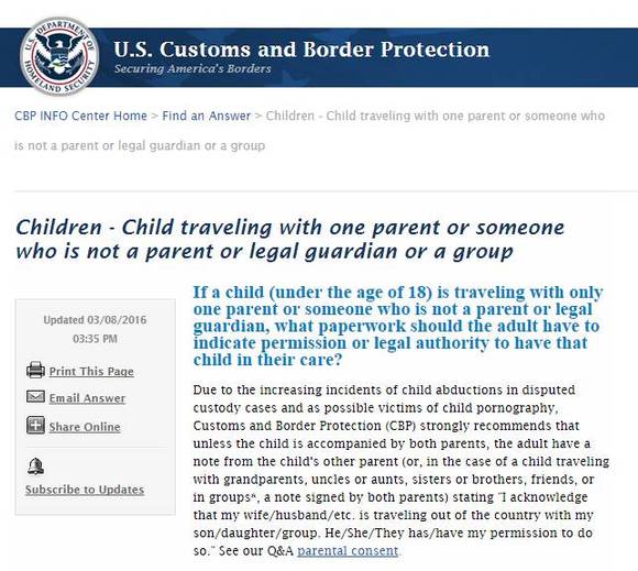 由于儿童诱拐事件越来越多,胁迫儿童从事色情服务的犯罪行为也日益增加,美国海关及边防保护局为遏制这些犯罪和不良行为,保护儿童及未成年,对于出入境的未成年人必须满足以下几种情况中的一种: