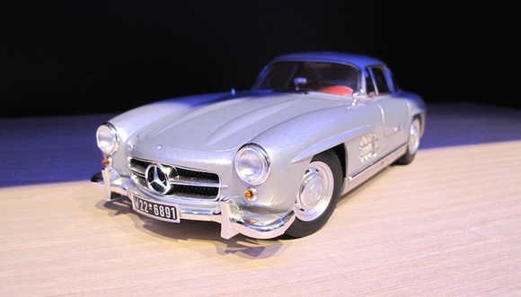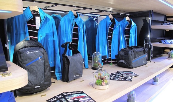 进入体验店,一层左手边的区域陈列着奔驰的各类周边产品。首先,是不同型号的精致奔驰车模。