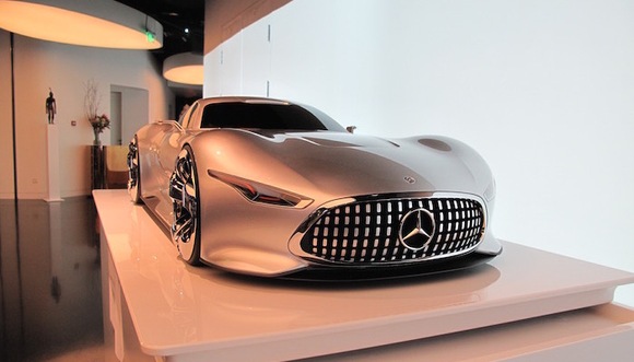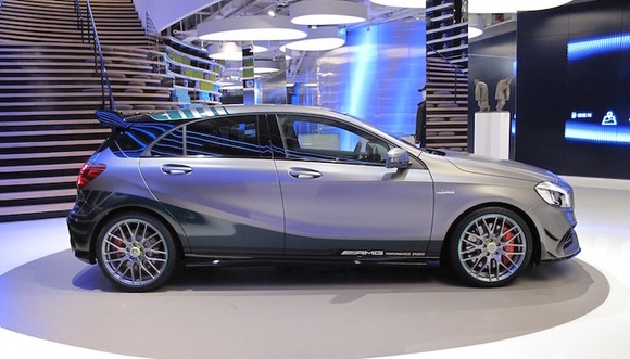 体验店一层的最深处停放着一台奔驰概念车,外加一台奔驰高性能系列中的梅赛德斯-AMG A45。