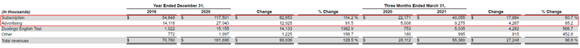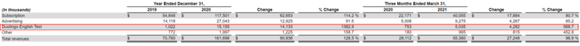 但从营收构成上看,多邻国的营收主要来自于APP订阅、广告、多邻国英语测试及其他收入。而且从2019年至2021年一季度,APP订阅及广告费用分占其营收构成的前两位。