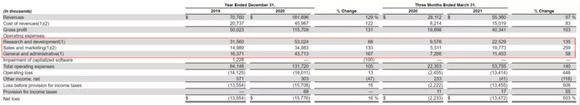 但值得注意的是,多邻国的利润增速完全没有跟上营收增速。2019年多邻国实现净亏损1.36亿元,2020年则实现1.58亿元,同比扩大16.39%。2021年Q1实现净亏损1.35亿元,仅一个季度已基本等同于2019年全年的亏损。较比2020年同期的223.3万元,亏损扩大高达503.31%。