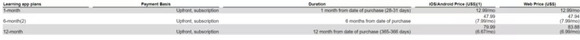 对此,Duolingo Plus目前推出了1、6、12个月的订阅套餐,手机端价格分别为12.99美元、47.99美元、79.99美元;PC端则分别为12.99美元、47.94美元、83.88美元。