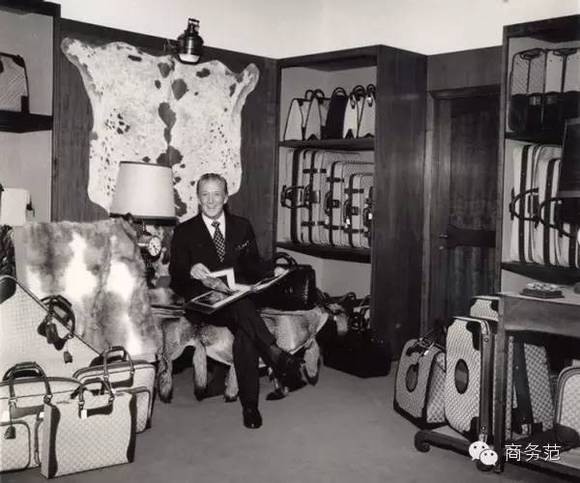 为了突出自家产品和其他人不一样,他还别出心裁地将自己的名字GUCCI刻在皮具上,以显示高贵。(其实这个idea来源于年轻时,Guccio在伦敦上流酒店当过差,发现达官贵人们特别喜欢将自己的名字刻在名贵的旅行箱上。所以设计自家产品时,老爷子也用上了)