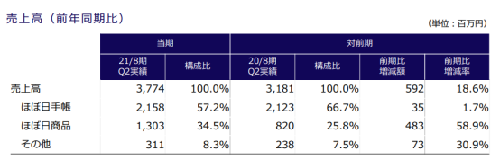 此外,还有地球仪及专用app“ほぼ日のアースボール”的批发销售扩大,销售额大幅增长。手账以外的其他商品销售额同比增长了58.9%。