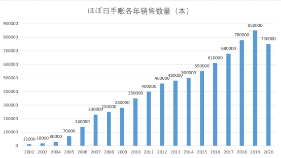 Hobonichi手账发售至今,销量年年增长,从发售第一年的1万2千本销量增长到2020年的75万本,并连续16年取得日本超人气杂货店loft销量第一的记录,成为了日本最畅销的手账品牌。