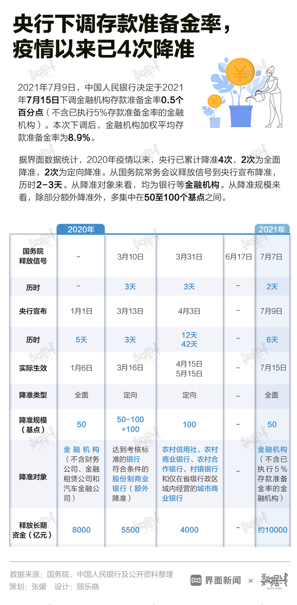 数据 | 央行下调存款准备金率,疫情以来已4次降准