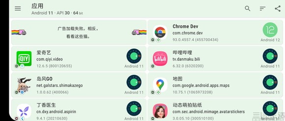 也就是说,至少在我们这台自认为已经安装了大量常用与不常用APP的测试机上,Android各个版本的APP适配占比分别为: