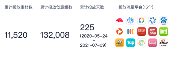 热云旗下Adinsight的统计数据显示,《光恋》早在2020年5月24日便开始投放,截止目前总计投放了225天。