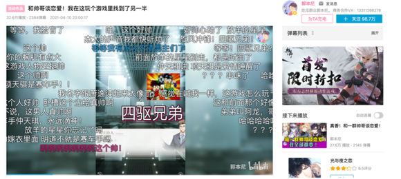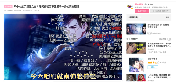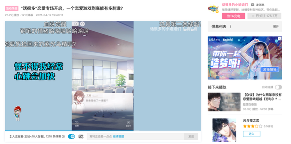 至此,《光恋》找到了新的财富密码,他们开始在开放测试期间邀请“吐槽类”、“影视类”的UP主开心嘴炮合作、郭本尼、话很多的小姐进行创作传播,强化用户共鸣。以数据来看,视频的播放量基本都在30w左右、弹幕互动数也在1000以上,玩家的积极性被极大的调动了起来。