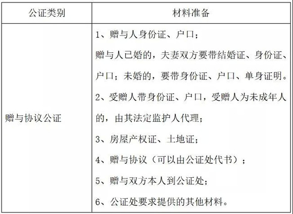 订立赠与协议公证需要准备的材料如下: