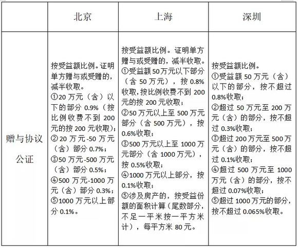 办理赠与协议公证的收费标准,详见下图: