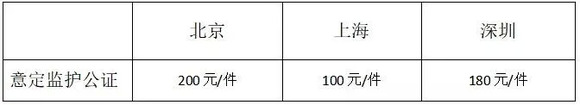 办理意定监护公证的收费标准,详见下图
