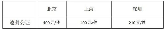 订立公证遗嘱的收费标准,详见下图: