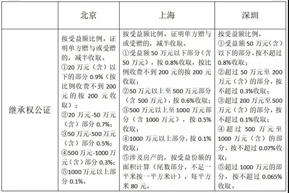 办理继承权公证的收费标准,详见下图: