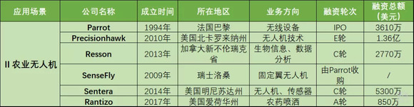 Precisionhawk:是一家利用无人机提供空中路径计算及数据评估解决方案的初创企业。其由无人机、飞行实时监控、人工智能系统组成的 Lancaster 平台搭载了嵌入式的 Linux 操作系统,配置了 WiFi、以太网、蓝牙、USB 等接口,以及可选的视觉、多光谱、热红外、激光雷达等种类丰富的传感器和摄像机,可以进行各种土地勘测任务,而且还能实时收集并存储数据,并在事后进行分析,为农业、保险、环境保护等领域的客户提供服务。