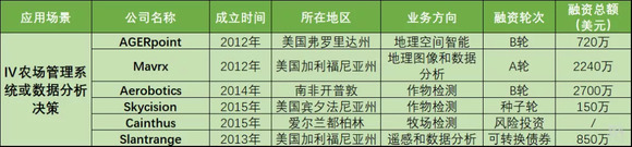 Mavrx:旨在将农业发展同大数据关联起来,促进农作物产量的提高和土地管理。公司为农业种植者提供基于图像的空间分析平台,利用无人机、飞机和卫星等采集图像,进行数据分析,为农户提供切实可行的见解,帮助种植者实现产量最大化和成本最低化。
