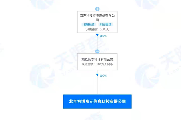天眼查App显示,北京方博资元信息科技有限公司穿透股权后为京东科技控股股份有限公司(原京东金融)全资孙公司。
