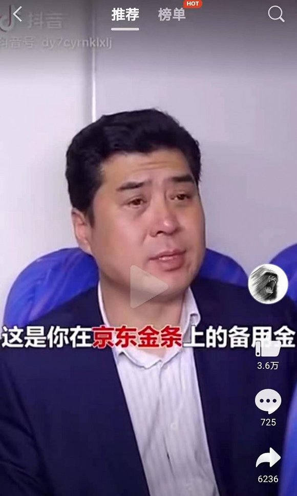 内容是一位农民工打扮的人士因母亲晕机向空姐提出能否打开窗户或更换座位,空姐则向其推销升舱服务,价格千元。该农民工打扮人士因余额不足放弃升舱,而后排一位西装革履的男子随即帮他在京东金融申请了15万元的“备用金”,称“如果你以后急用钱,不需要再看别人的脸色了。”