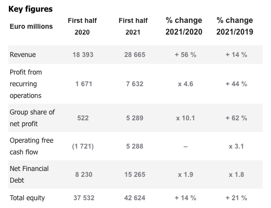 经常性业务利润从2020年同期的亏损3000万欧元(约合人民币2.3亿元)扭亏为盈,实现了3.9亿欧元(约合人民币30亿元)的盈利,比2019年同期盈利增长1%。