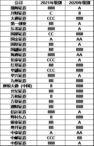 其中,东海证券的上调幅度最大,评级由2020年的CC上调5级至A类。