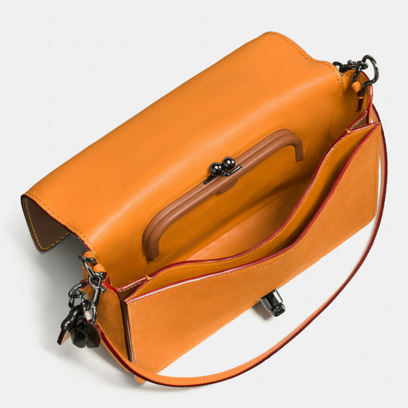 除了考虑时尚性,Coach 还选择用品牌的 Bonnie 经典旧设计来增加实用性。Bonnie 最擅长的金属扣、旋锁和袋上袋的设计,顾客可以拿它们来装零钱、交通卡并保证安全度。
