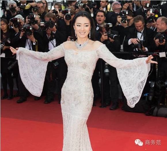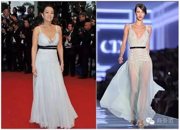 12年,巩俐选择了Christian Dior的2012春夏系列,白雪纺吊带长裙.