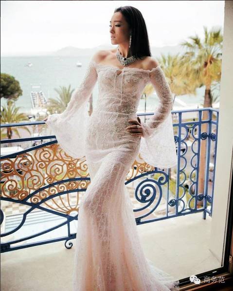 跟着电影《归来》又一次来到戛纳影展,这一年巩皇继续选择了 Roverto Cavalli 的礼服,黑色蕾丝镂空长裙。