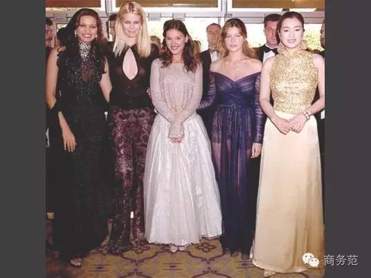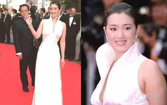 闭幕式时换了一身金色旗袍,你们现在流行的绑带鞋...那时候巩俐就已经开始穿了...