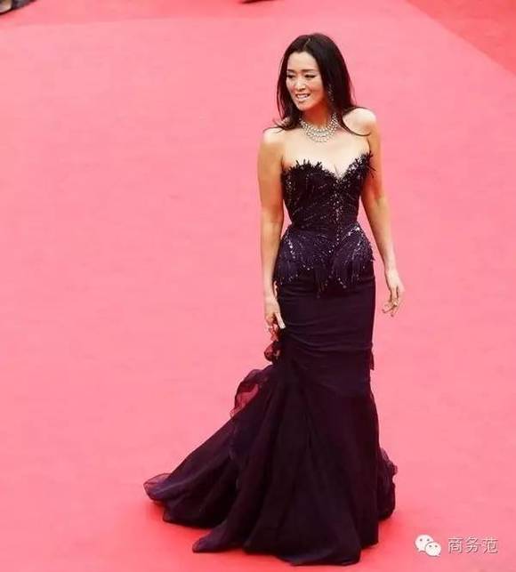 11年,巩皇身着Roberto Cavalli的紫色刺绣鱼尾纱裙,亮相戛纳影展红毯。范主先来张特写。