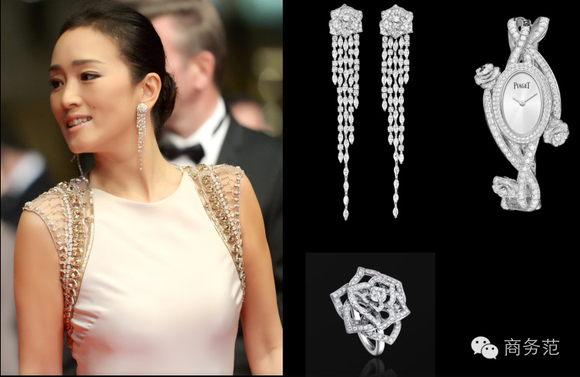 作为Piaget伯爵全球品牌代言人,佩戴的自然是伯爵Piaget Sunny Side of Life高级珠宝,与Extremely Piaget高级珠宝。 宝蓝和钻石珠宝相衬,更能搭配她的礼服。