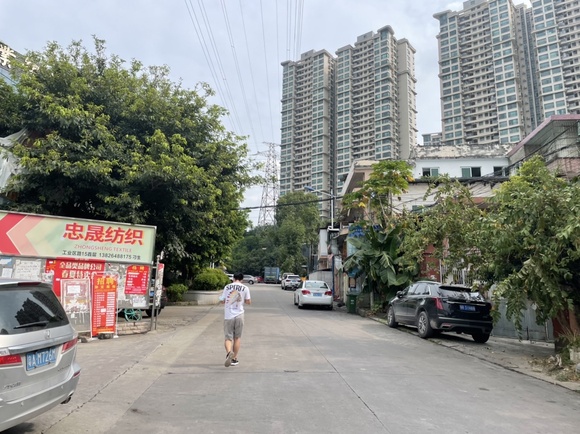 南村镇上的一栋五层楼房里有着上百个制衣工人,在三楼的制衣车间内,头顶的大吊扇正在驱散7月的炎热。男工们光着膀子,女工们身着背心,正争分夺秒地完成当日的生产任务。
