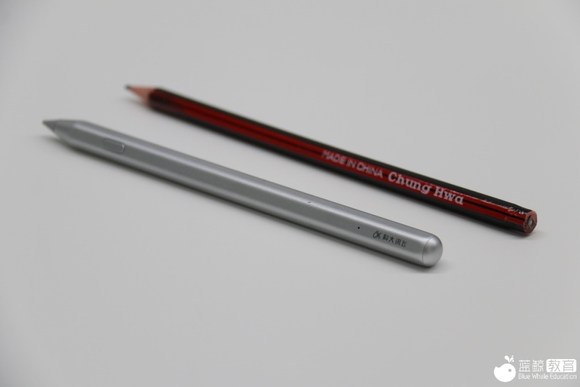 打开包装后,除了平板本身,还有一支AI作答笔。从外观上看,这只电子笔和普通2B铅笔基本无异,六棱柱笔身,熟悉的圆锥形笔尖,轻巧的持握感,都让人有一种莫名的熟悉感,银色的涂装也给这支笔增添了科技的元素。