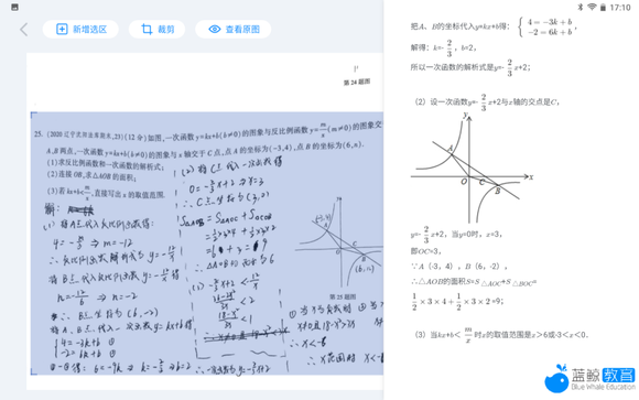 在批改完成后,点击每道题,T10都会在右侧给出题目和解析,解析步骤很详细,比较方便。但在实际操作时,我们也遇到了一些问题。如在批改时,因为扫描精度问题,导致批改出现失误的情况。