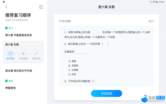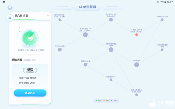 除此之外,T10还支持学生进行AI单元复习,这一环节不再按照小节为孩子们梳理归纳,而是对整章内容的整体把握。学生通过基础巩固、考点提升、单元模拟,全面复盘整个单元内容的知识点和考点,根据孩子的进度量身定制学习计划,不会浪费时间和精力。