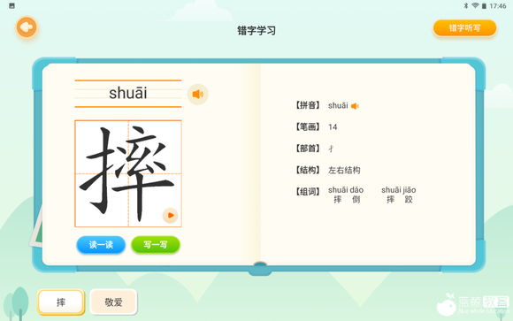 写错的词会被放进错字本中,并会在听写后进行错字学习,趁着记忆最清楚的时候,实时纠正。