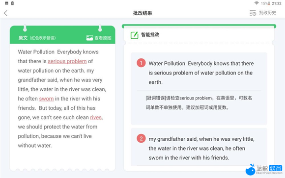 特别是在批改步骤很复杂的大题时,因为写得太满,导致靠近卷子边缘的位置很难被精确识别,这也就导致定位不到答案,而出现批改错误。因此,如若使用这一功能,学生需要注意将卷子完整的放在机器前,让学习机完整看到卷面;还需要注意卷面答题位置,并将答案标明出来。