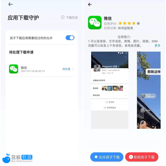 T10在这方面可以说是防得严严实实,尽管配备了应用商城,但是在搜索应用时可以发现,几乎都是学习类应用,而且有些要向家长端提交申请,由家长同意后,才可下载。